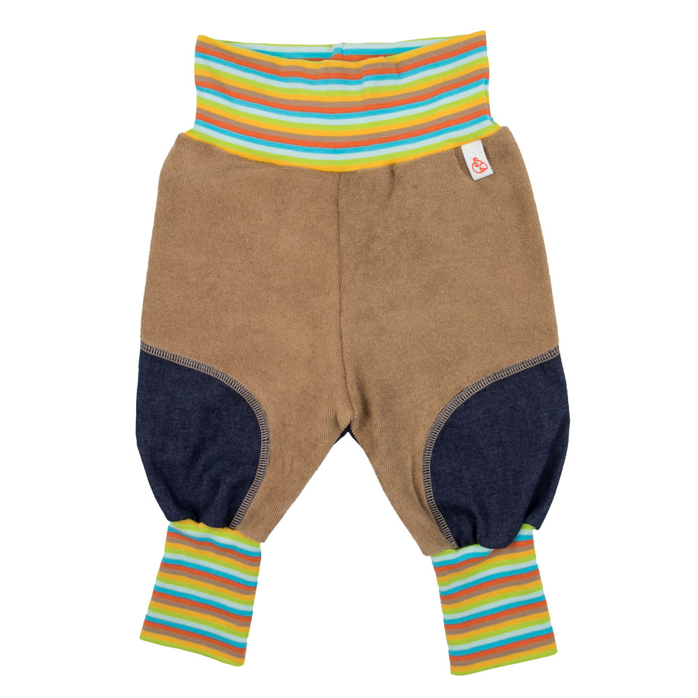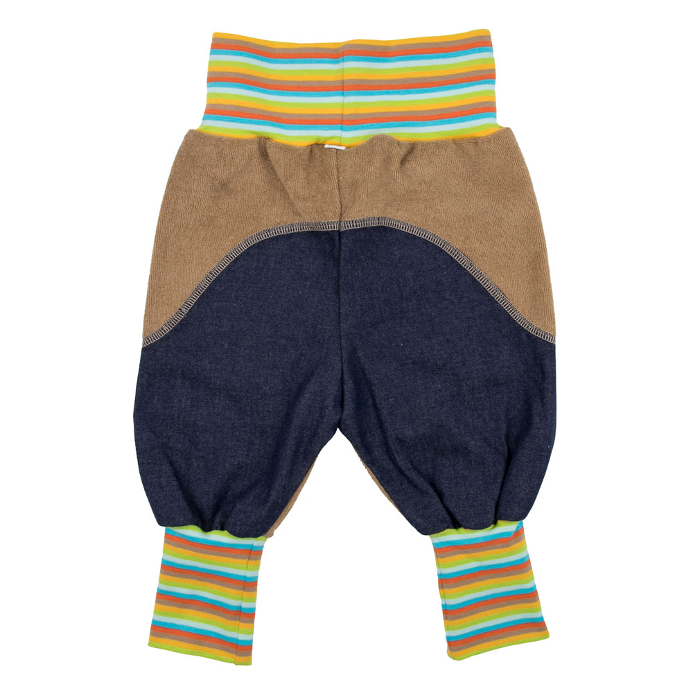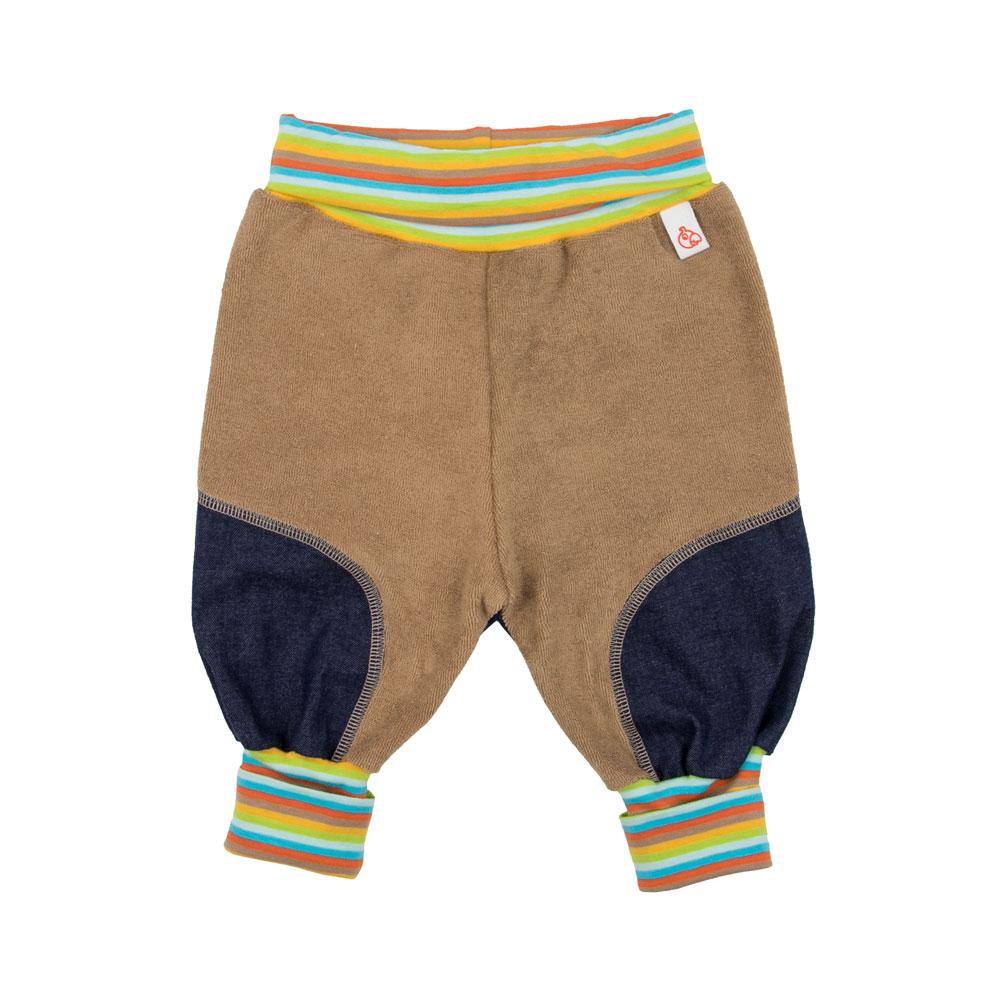 Diese Hose aus einer Kombination von 100% Bio-Baumwoll-Frottee (kbA) und Bio-Denimstoff zeichnet sich durch ihre besondere Strapazierfähigkeit aus. Vorne am Bäuchlein sowie im unteren Rücken ist sie weich und flauschig. An Gesäß, Knien und rückwärtigen Beinen hält sie robust jedem Abenteuer stand. Der breite Feinrippbund mit integriertem Gummizug sorgt für Bequemlichkeit. Die umschlagbaren Beinabschlüsse mit extralangen Ringelbündchen ermöglichen ökonomisches Mitwachsen. Ri ra rutsch!