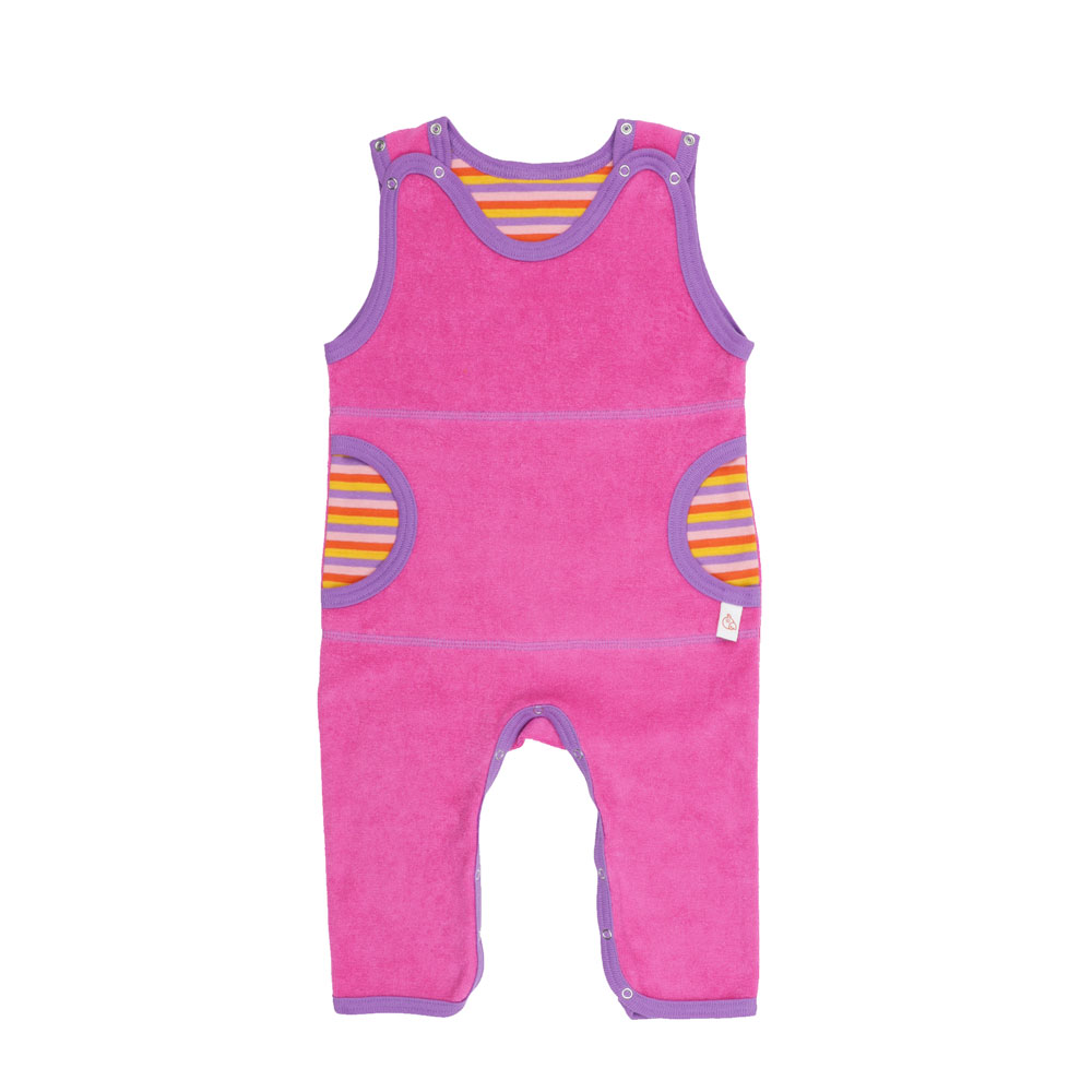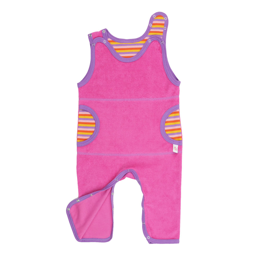 Dieser flauschige Strampler ist aus 100% Bio-Baumwoll-Frottee (kbA) hergestellt. Die durch Druckknöpfe längenverstellbaren Träger ermöglichen ein Mitwachsen. Für angenehme Wärme an den richtigen Stellen sind oberer Rücken und Bauch mit Bio-Baumwoll-Jersey gefüttert. Durch die miteinander verbundenen, rund angeschnittenen Känguru-Taschen kann man dem kleinen Liebling himmlisch das Bäuchlein massieren. Eine durchgehende Druckknopfleiste am Innenbein ermöglicht problemloses Wickeln. Der im Schritt eingenähte Zwickel sorgt für ausgiebige Strampelfreiheit.